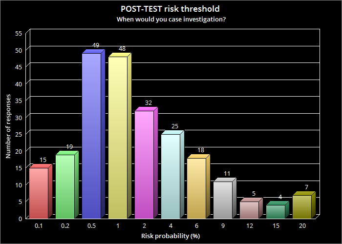 OK – so that is the patient’s risk, but how risk averse are the Docs? What were the responses to the question: “What post-testing risk level would you cease further investigation?”