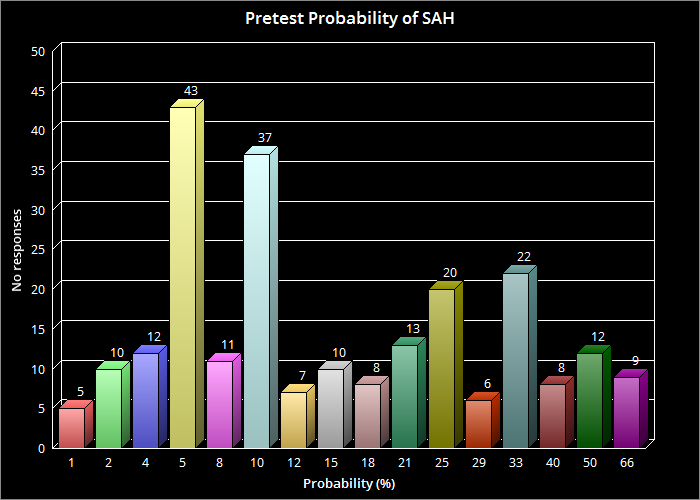 I think the problem is when people start taking data, eg the Perry paper, and start using it as a ‘one size fits all ‘. For example, as you point out, if our gestalt pretest probability is really high, even a negative ct within 6hrs still won’t get you to a low enough risk and i would argue that a LP is still warranted. I think that this is an important point that doesn’t get discussed much. Are you aware of any structured calculator of pretest probability based on history/exam?